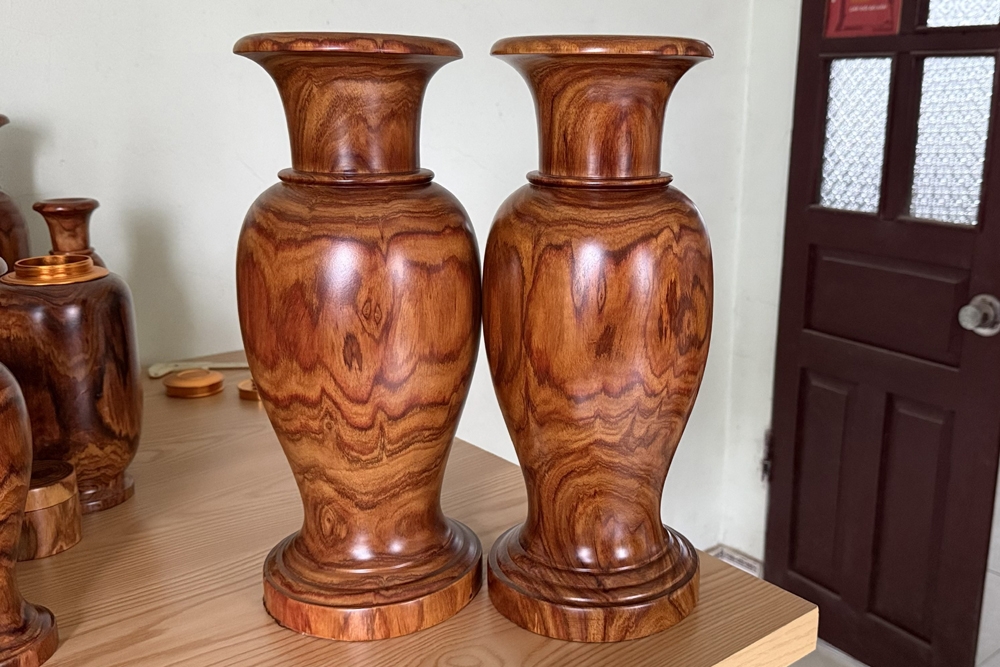 cặp lộc bình gỗ sưa đỏ đk 15 ms120