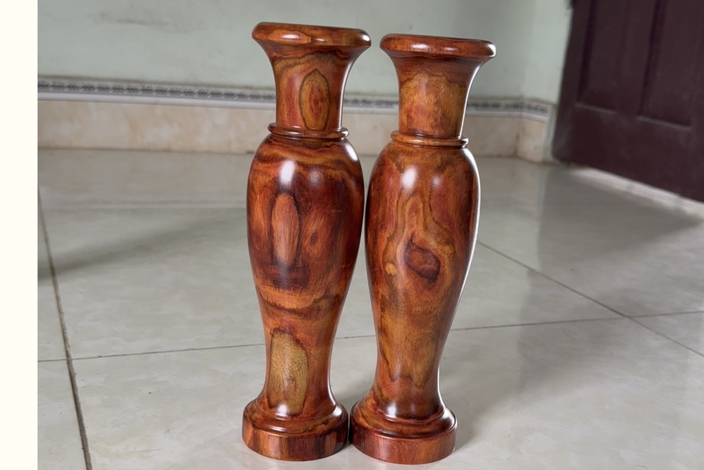 đôi lọ hoa gỗ sưa đỏ đk 8cm ms122